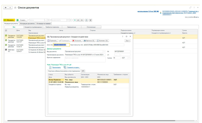 1С:ЭДО — это сервис для обмена юридически значимыми электронными документами (договорами, актами, счетами, заказами, актами сверки и др.) напрямую из вашей программы «1С:Бухгалтерия для Казахстана».