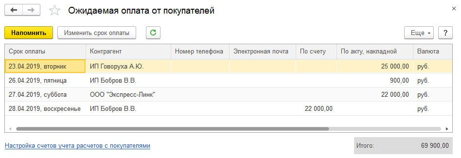 Если же сроки оплаты не установлены в договоре и не заданы в настройках программы, то такая задолженность с момента возникновения будет автоматически считаться просроченной.