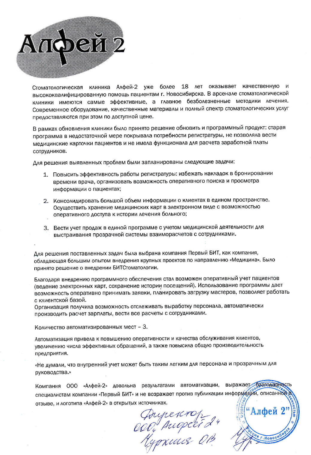 Стоматологическая клиника Алфей-2 уже более 18 лет оказывает качественную и высококвалифицированную помощь пациентам г. Новосибирска. В арсенале стоматологической клиники имеются самые эффективные, а главное безболезненные методики лечения. Современное оборудование, качественные материалы и полный спектр стоматологических услуг предоставляются при этом по доступной цене.